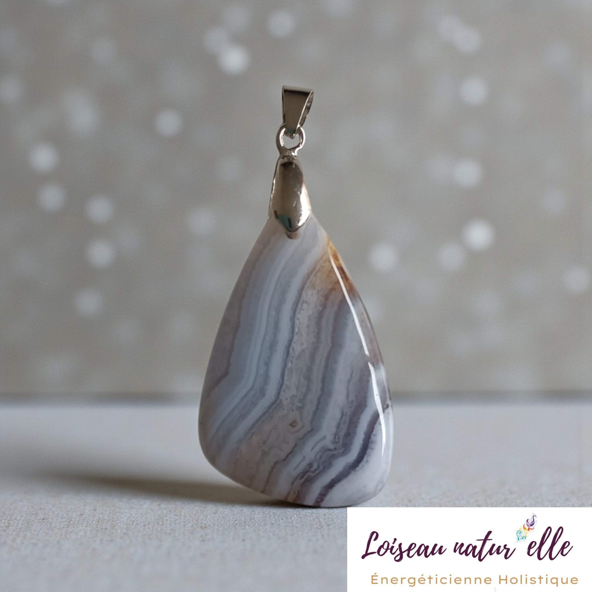 l'Agate dentelle bleue accompagnerait l'apaisement émotionnel et favoriserait une communication douce et alignée.