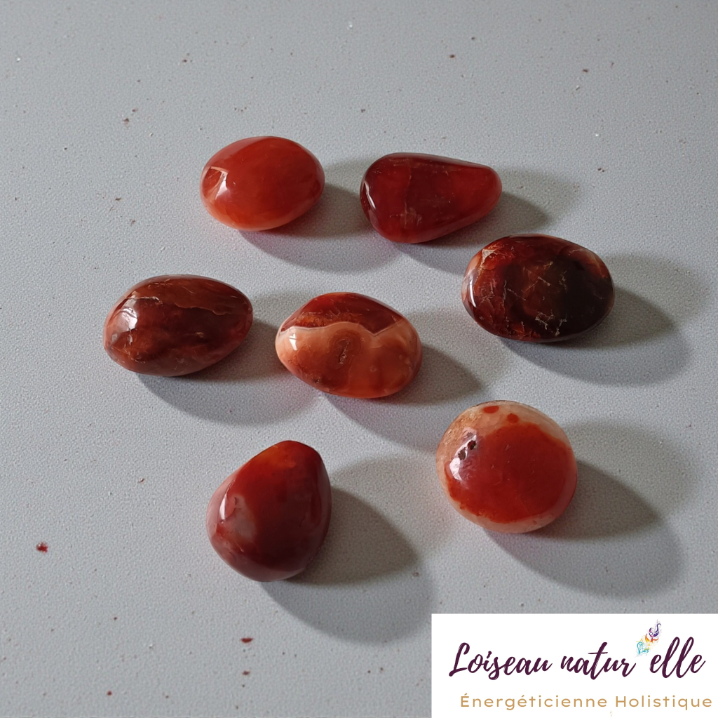 La Cornaline soutiendrait l'élan vital et la créativité, aidant à retrouver motivation et confiance dans l'action juste. Elle accompagnerait l'ancrage dans le corps et la joie d'être pleinement présent.