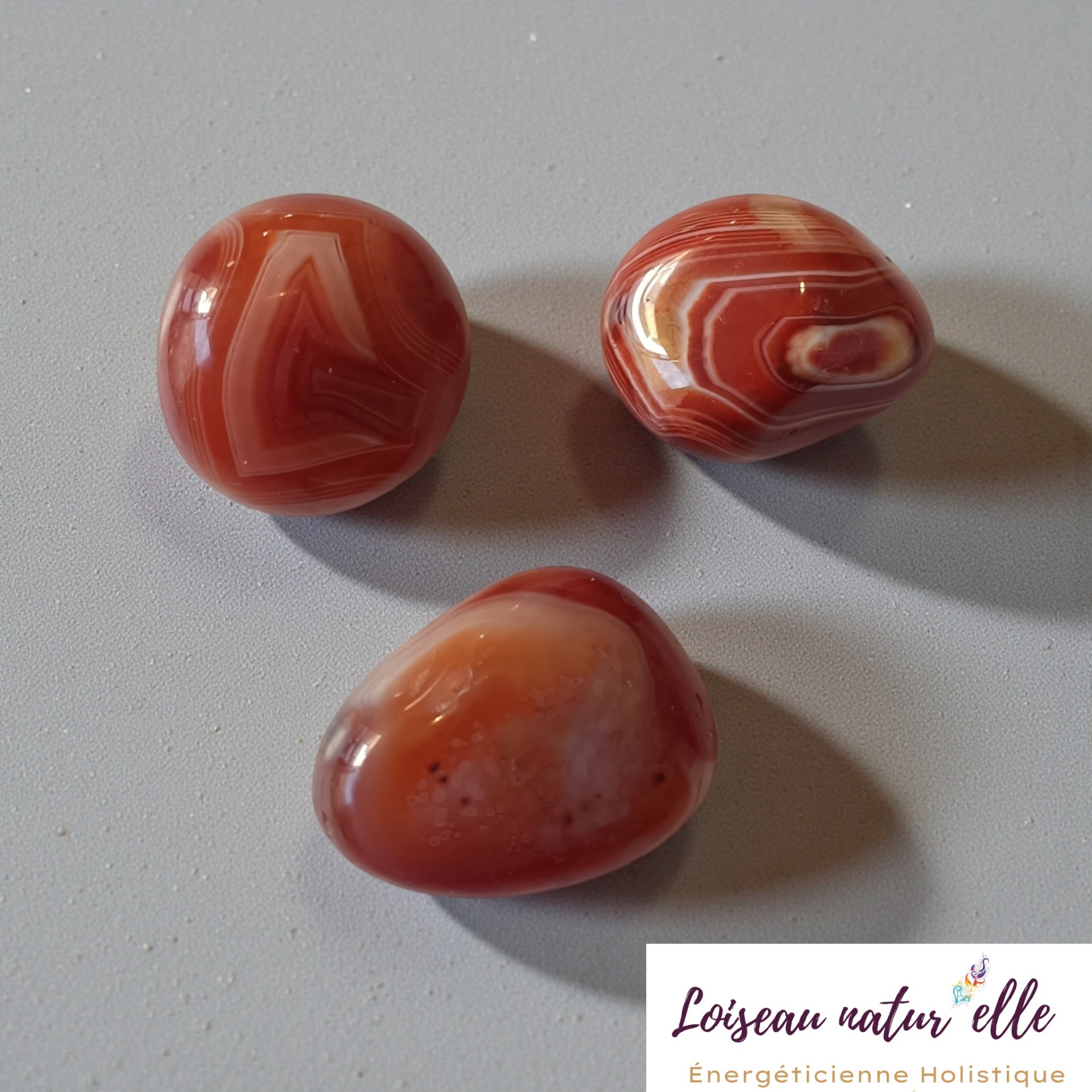 La Cornaline soutiendrait l'élan vital et la créativité, aidant à retrouver motivation et confiance dans l'action juste. Elle accompagnerait l'ancrage dans le corps et la joie d'être pleinement présent.